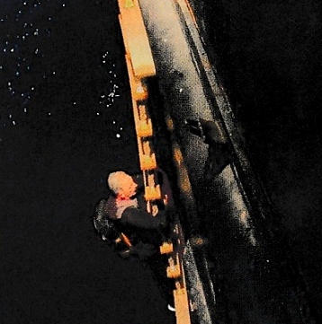 Doba, po kterou jsem čekal na spuštění žebříku, se mi hodila. Po třech nebo více hodinách, co jsem byl poskládán v ostrůvku, moje nohy odmítaly fungovat. Žebřík sestával z příček z dvě stopy dlouhých desek na silném laně. Přirozené by bylo držet se za příčky, což nešlo – příčky se zadní hranou opíraly o trup lodi. Musel jsem se držet lana. Lezení po žebříku bylo těžké, ale ne nemožné. Výstup podél příkrého boku lodi byl vyčerpávající, ale nakonec jsem bezpečně stál na palubě MSC Sheila.